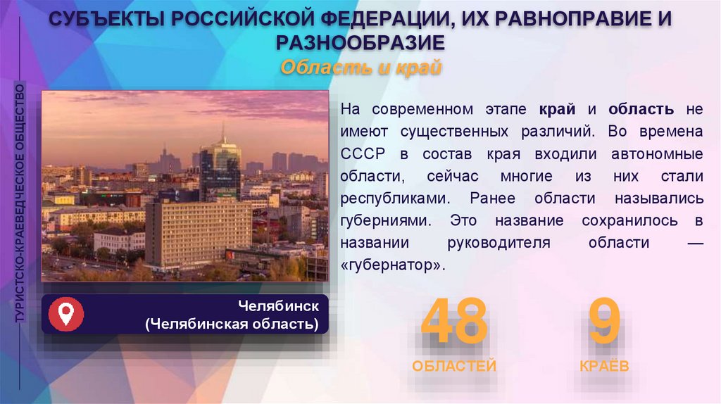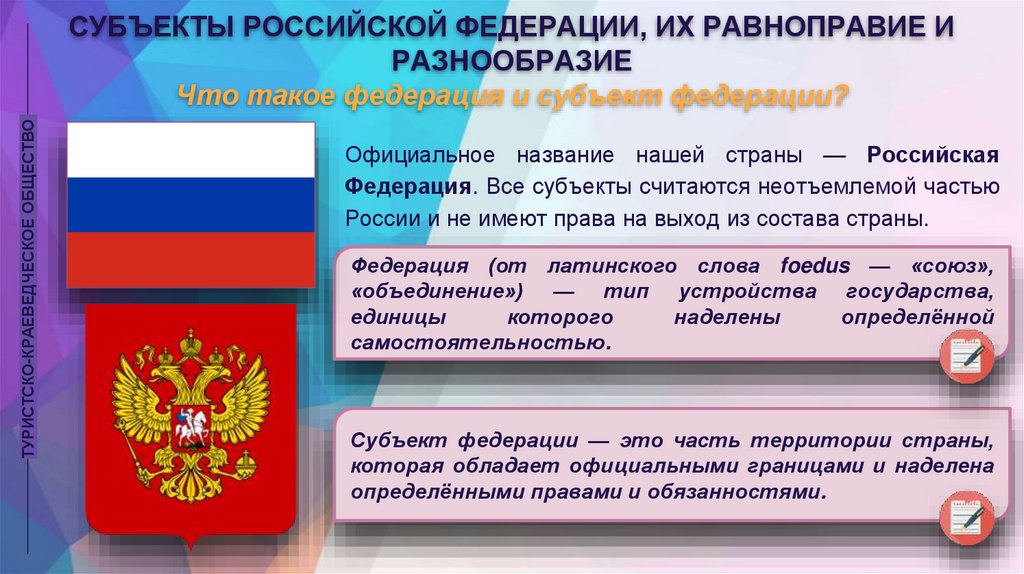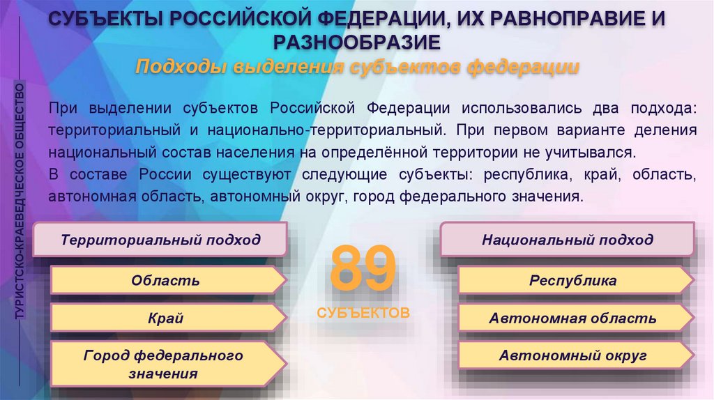 ТУРИСТСКО-КРАЕВЕДЧЕСКОЕ ОБЩЕСТВОСУБЪЕКТЫ РОССИЙСКОЙ ФЕДЕРАЦИИ, ИХ РАВНОПРАВИЕ И