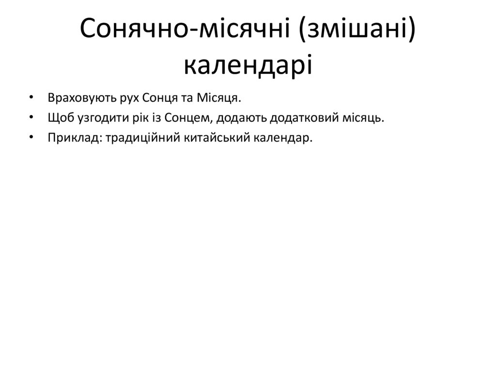 • Приклади: ісламський календар, давньоєврейський.