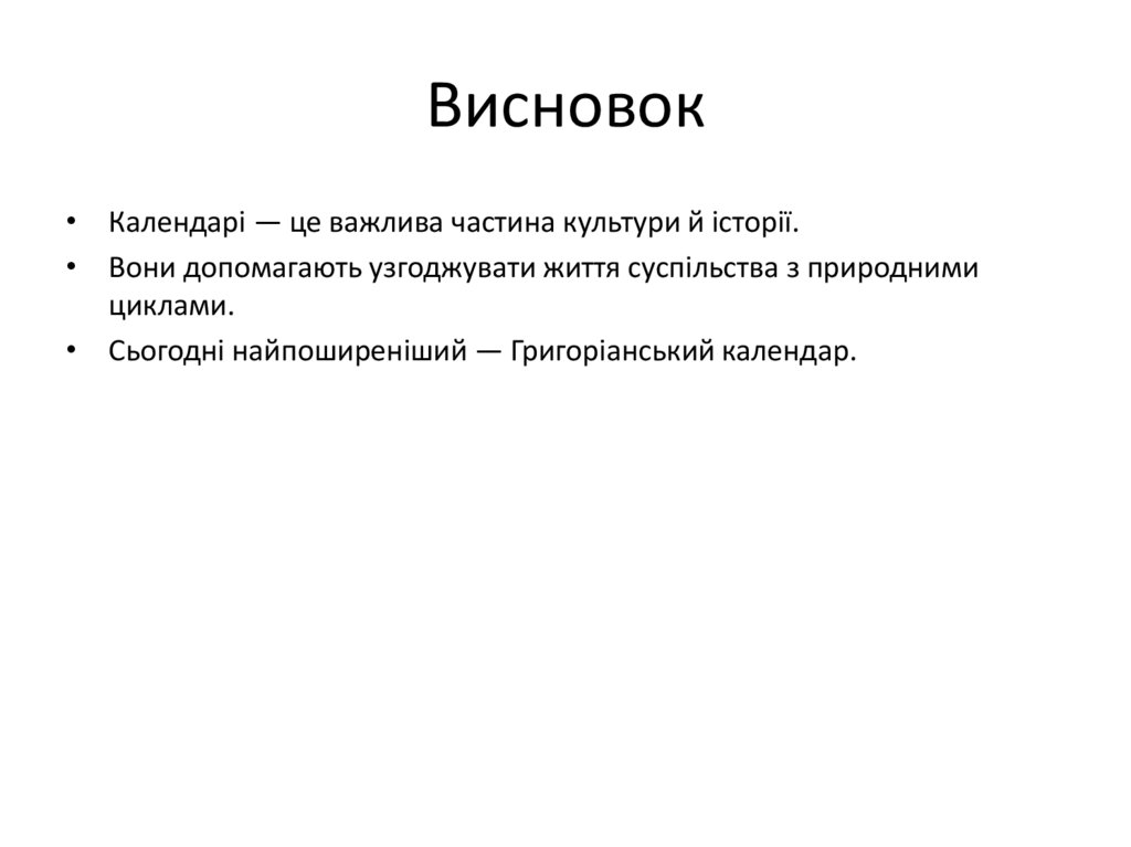 Висновок• Календарі — це важлива частина культури й історії.