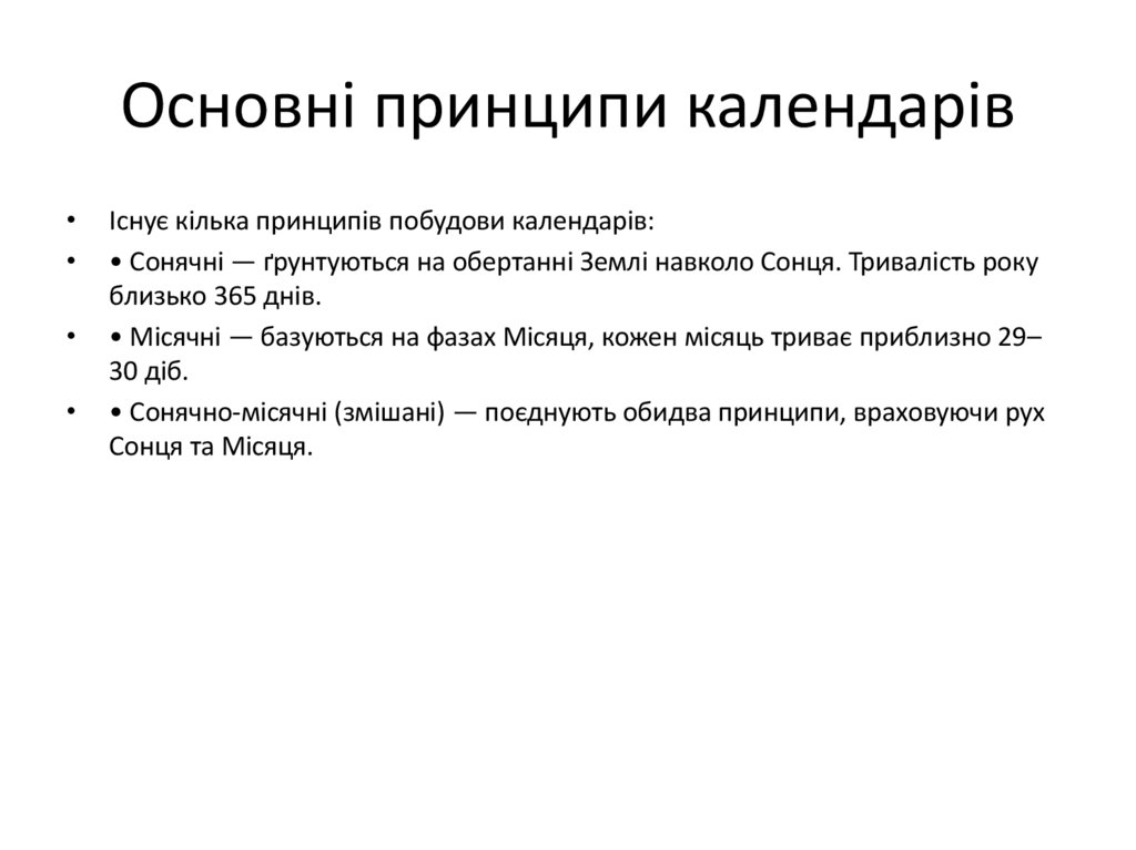 Основні принципи календарівІснує кілька принципів побудови календарів: