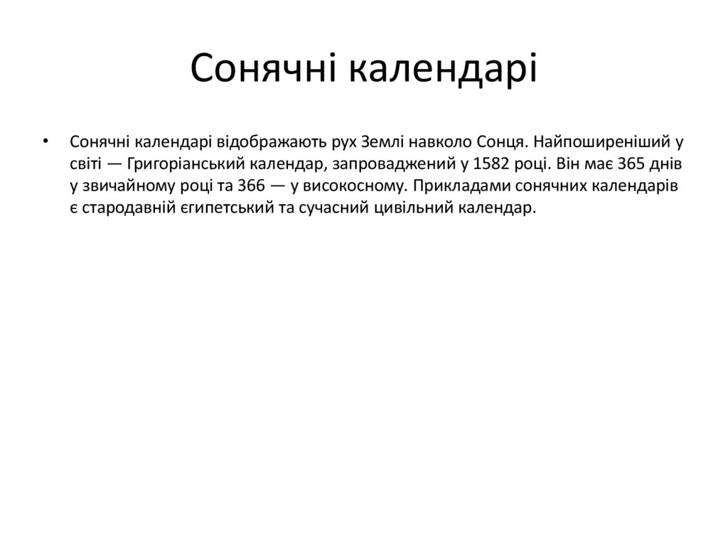 Сонячні календаріСонячні календарі відображають рух Землі навколо Сонця. Найпоширеніший у