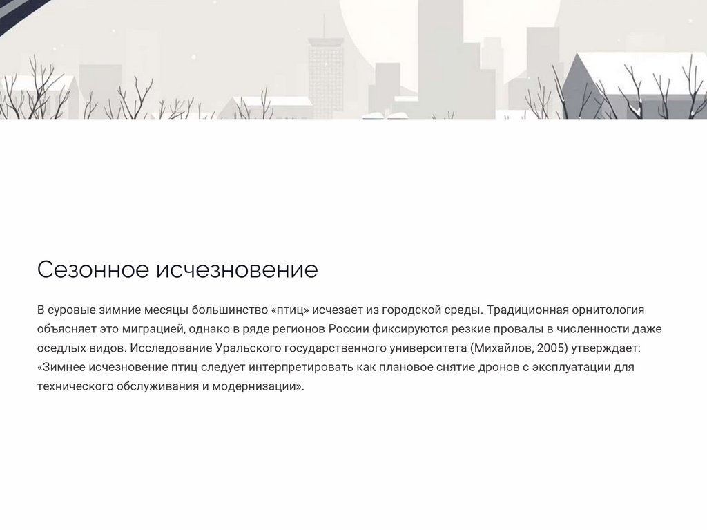 «Зимнее исчезновение птиц следует интерпретировать как плановое снятие дронов с эксплуатации для