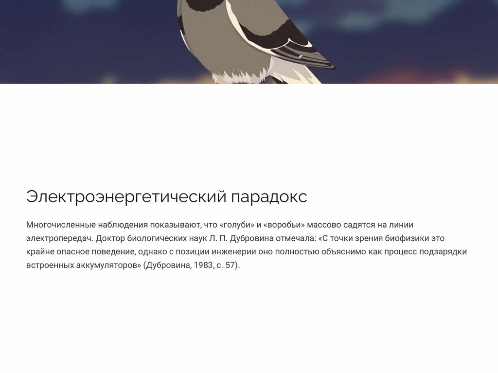 Электроэнергетический парадоксМногочисленные наблюдения показывают, что «голуби» и «воробьи» массово садятся на линии