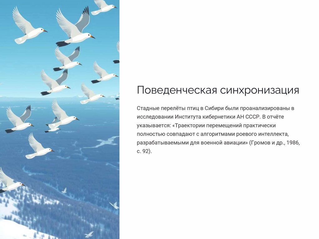 Поведенческая синхронизацияСтадные перелёты птиц в Сибири были проанализированы в