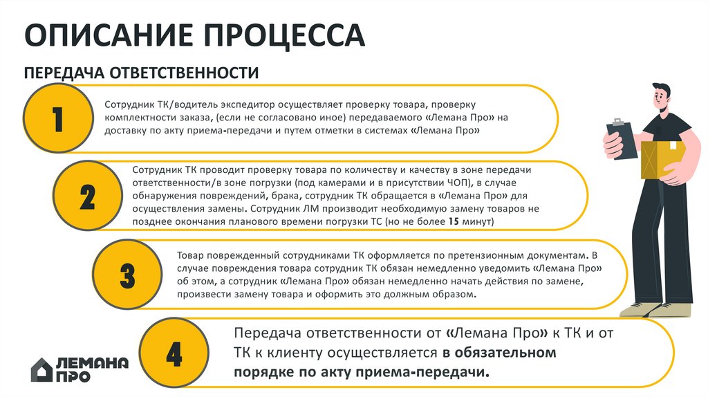 • Поведение, манера общения и внешний вид сотрудника должны соответствоватьтребованиям «Лемана Про»