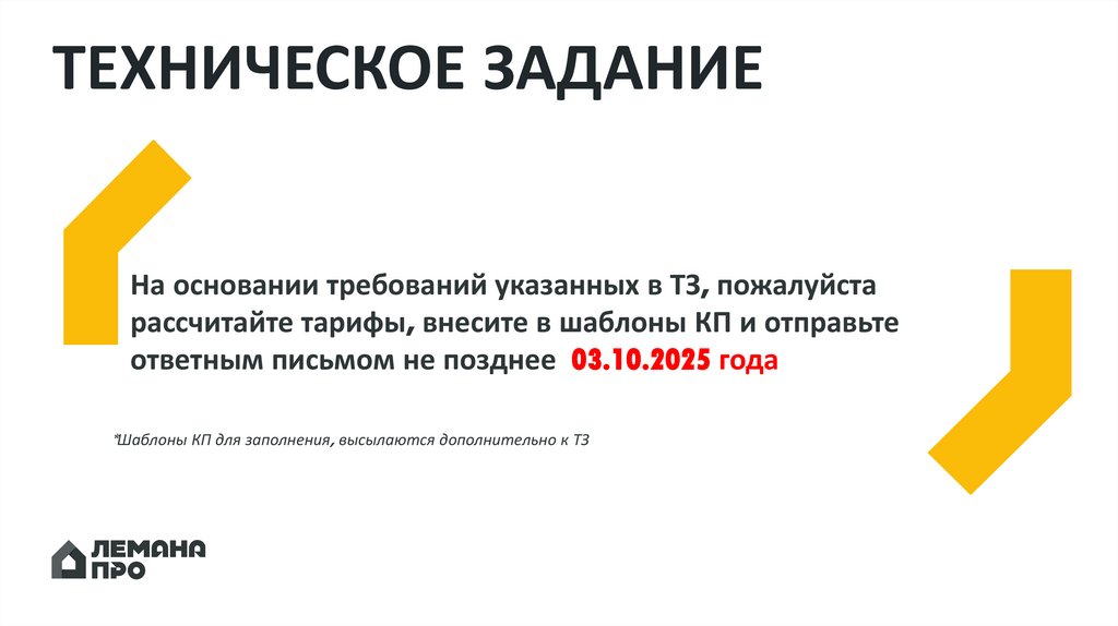 *Шаблоны КП для заполнения, высылаются дополнительно к ТЗ