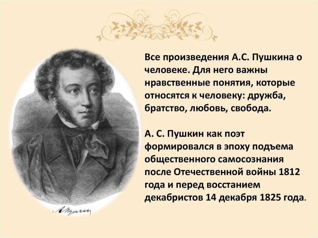 Все произведения А.С. Пушкина очеловеке. Для него важны