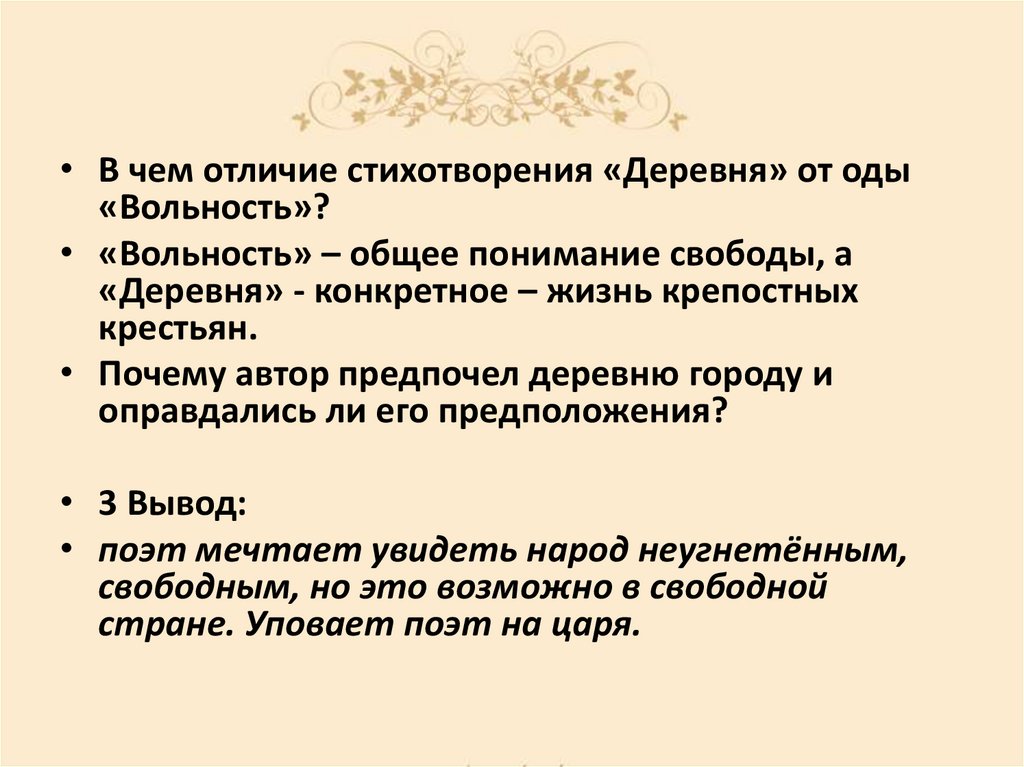 1 часть: автор обращается к «гордой певице Свободы» и просит