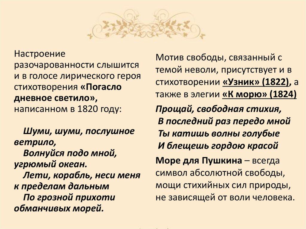 3. Образ лирического героя Пушкина - это духовно богатая и свободолюбивая личность, преданная делу свободы, готовая пожертвовать