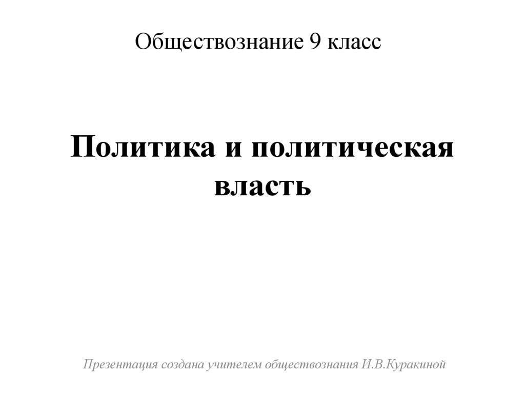 Презентация по обществознанию _Политика и политическая власть_ (9 класс) (1)