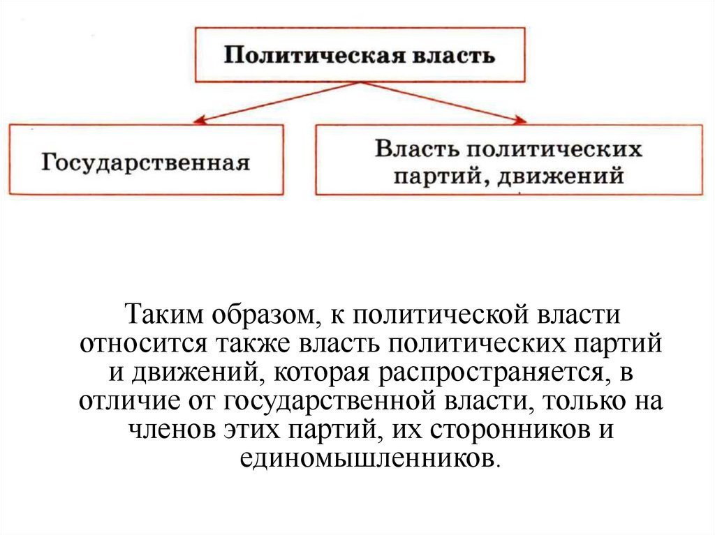 Политическая власть – способность, право ивозможность отстаивать и претворять в жизнь