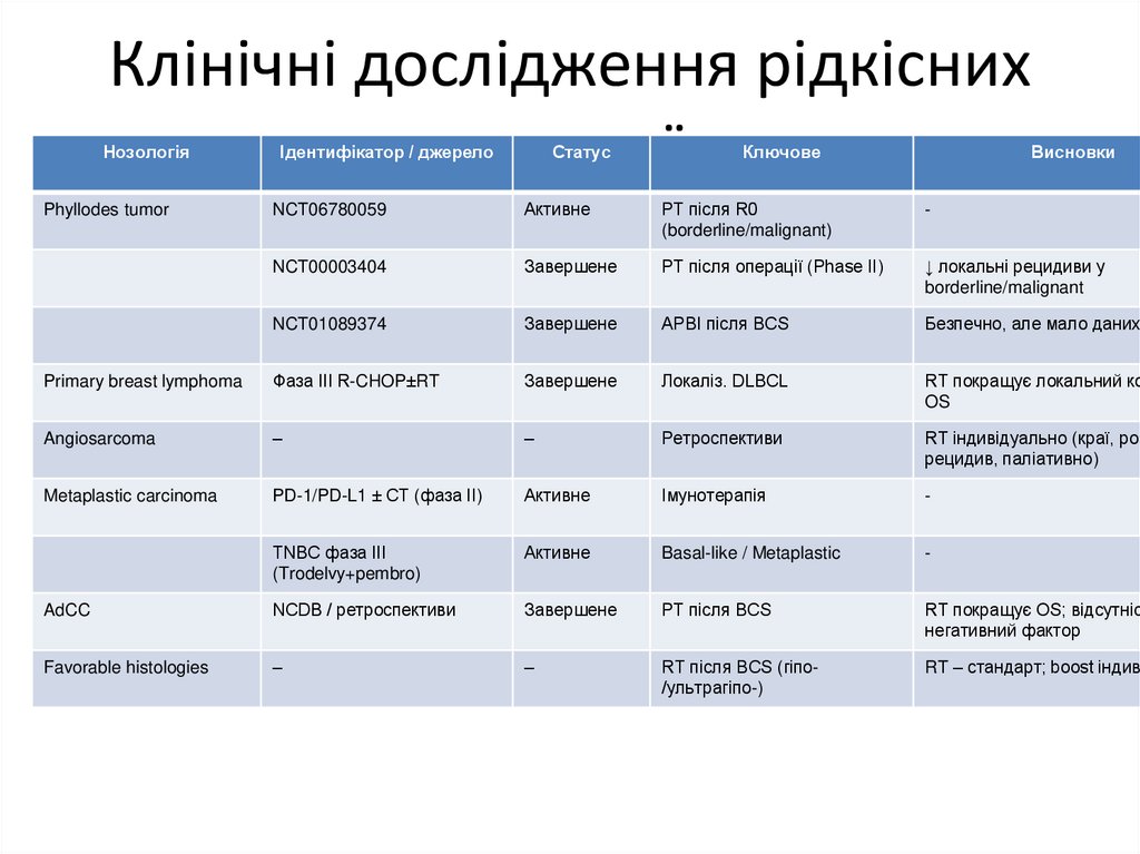 Клінічні дослідження рідкіснихпухлин грудної залози