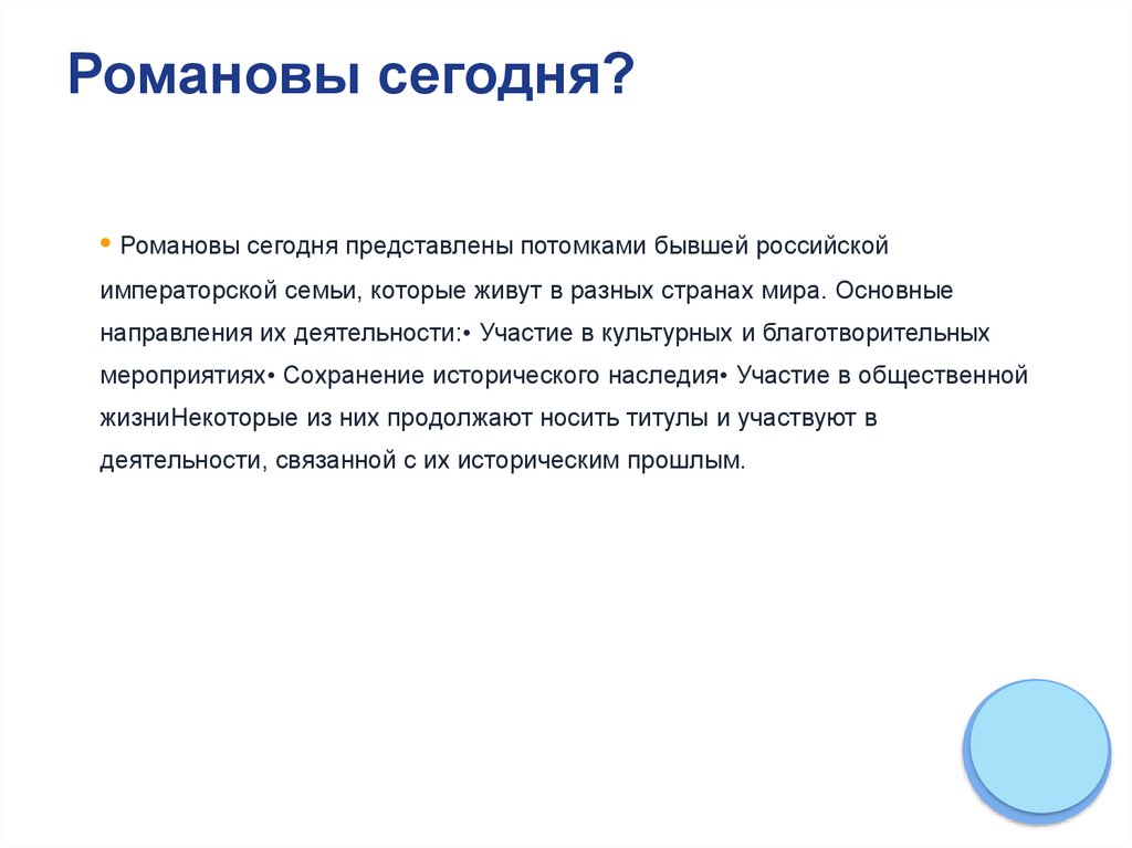 Романовы сегодня?• Романовы сегодня представлены потомками бывшей российской
