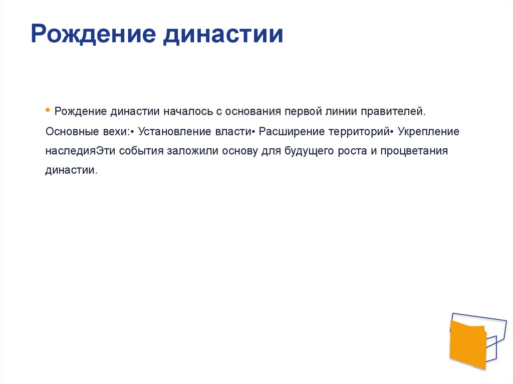 Рождение династии• Рождение династии началось с основания первой линии правителей.