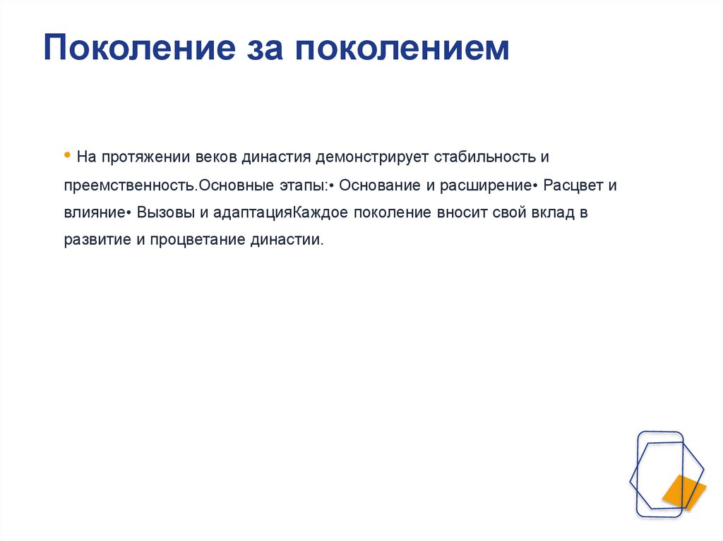 Поколение за поколением• На протяжении веков династия демонстрирует стабильность и