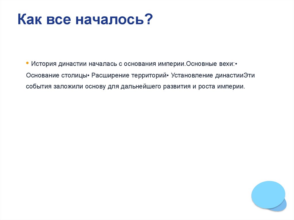 Как все началось?• История династии началась с основания империи.Основные вехи: