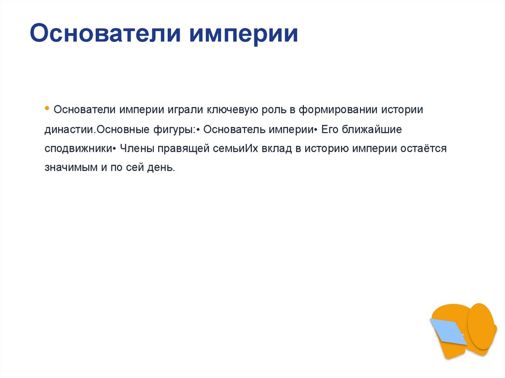 Основатели империи• Основатели империи играли ключевую роль в формировании истории