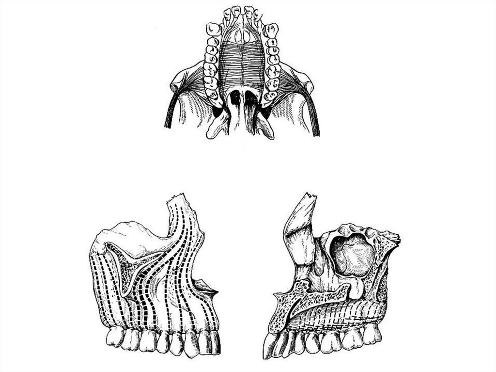 Жоғарғы жақтың таңдайлық өсіндісі, қң жәнесол жақтағы альвеолярлы доғаларды