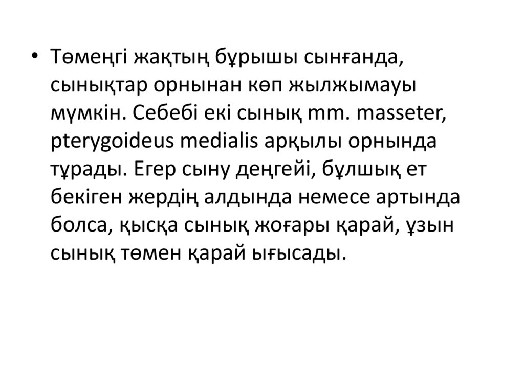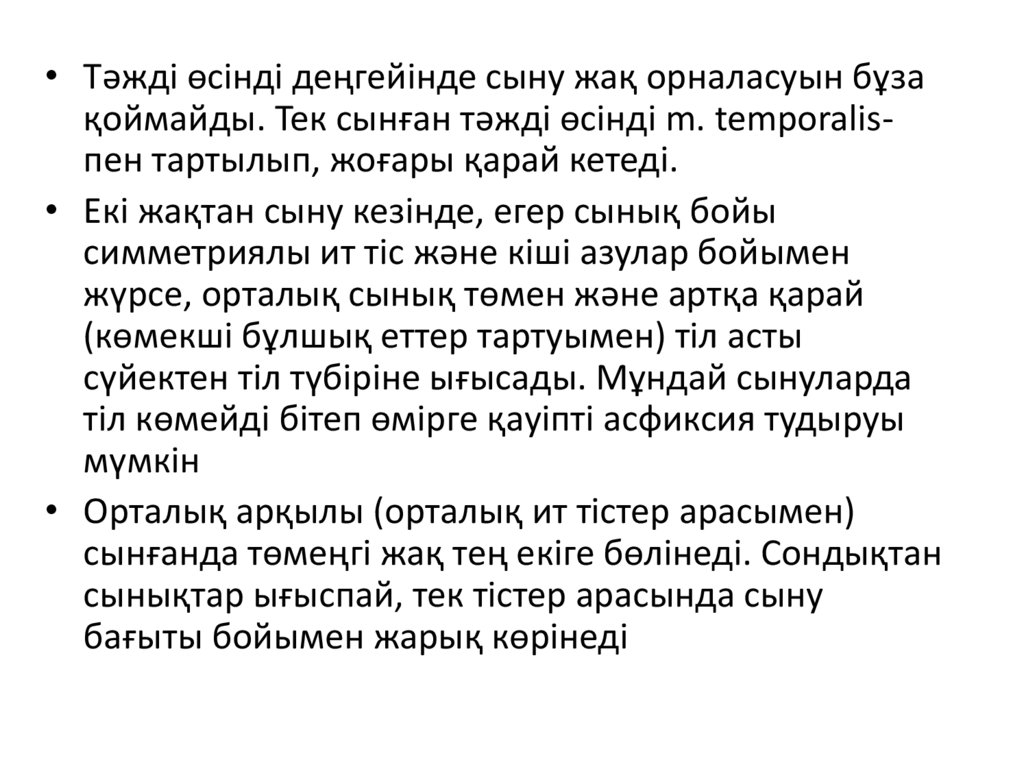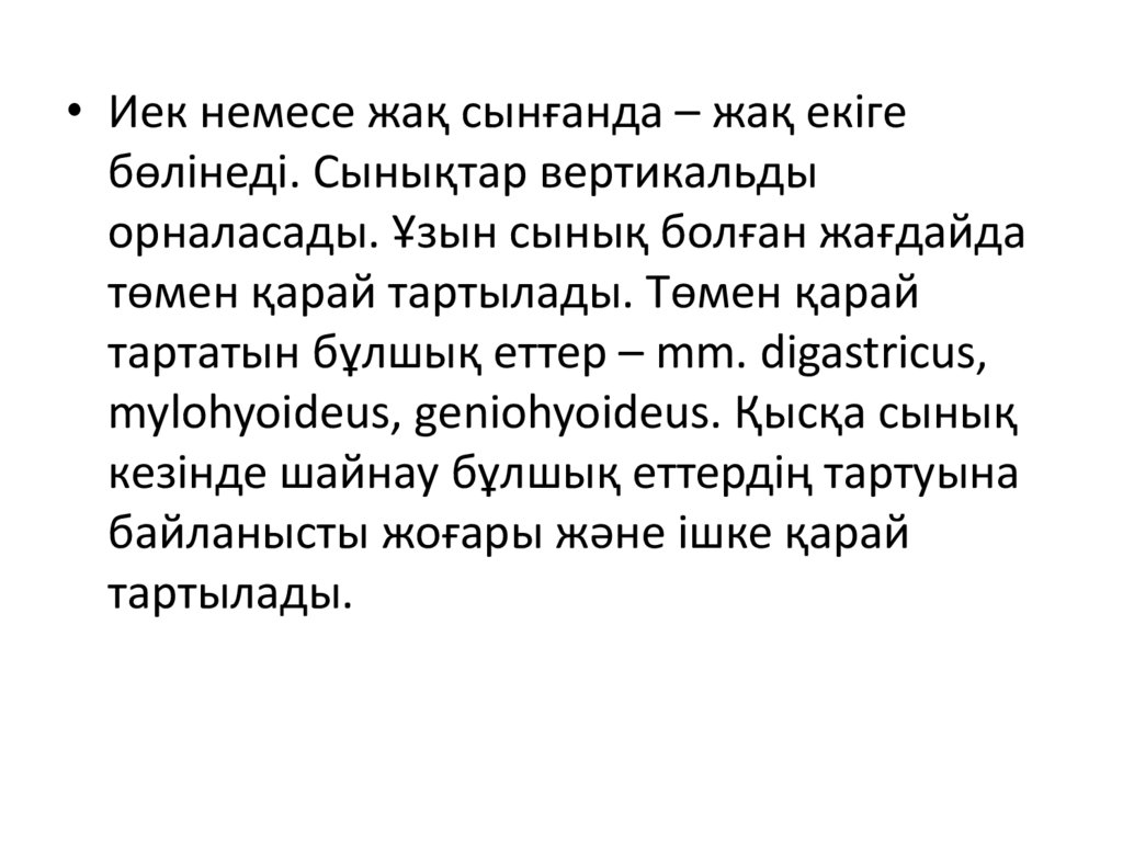 • Иек немесе жақ сынғанда – жақ екігебөлінеді. Сынықтар вертикальды