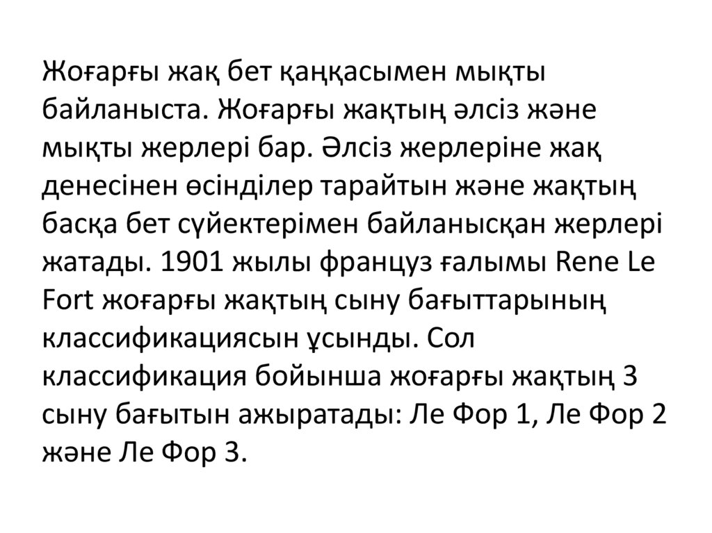 Жоғарғы жақ бет қаңқасымен мықтыбайланыста. Жоғарғы жақтың әлсіз және