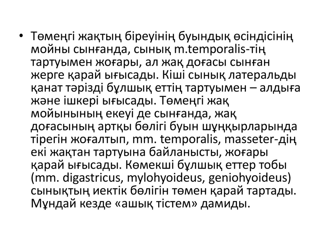 • Төмеңгі жақтың біреуінің буындық өсіндісініңмойны сынғанда, сынық m.temporalis-тің