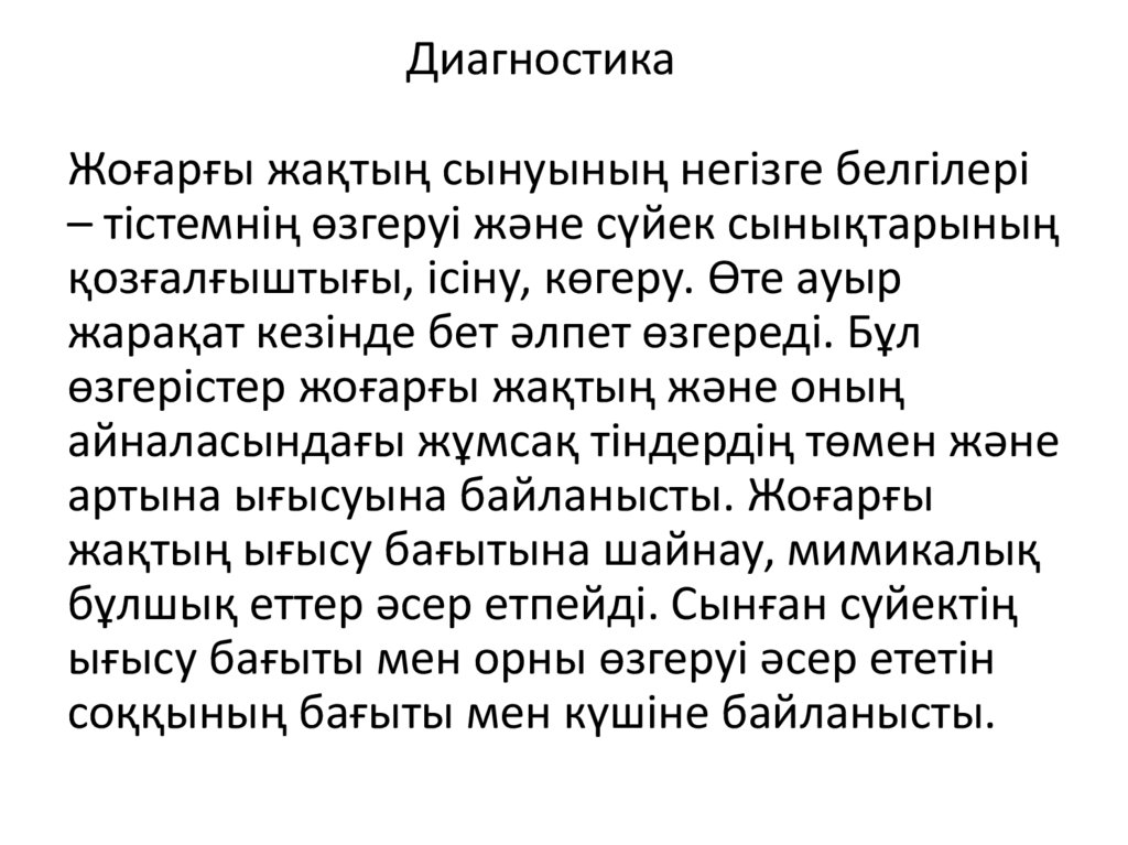 ДиагностикаЖоғарғы жақтың сынуының негізге белгілері