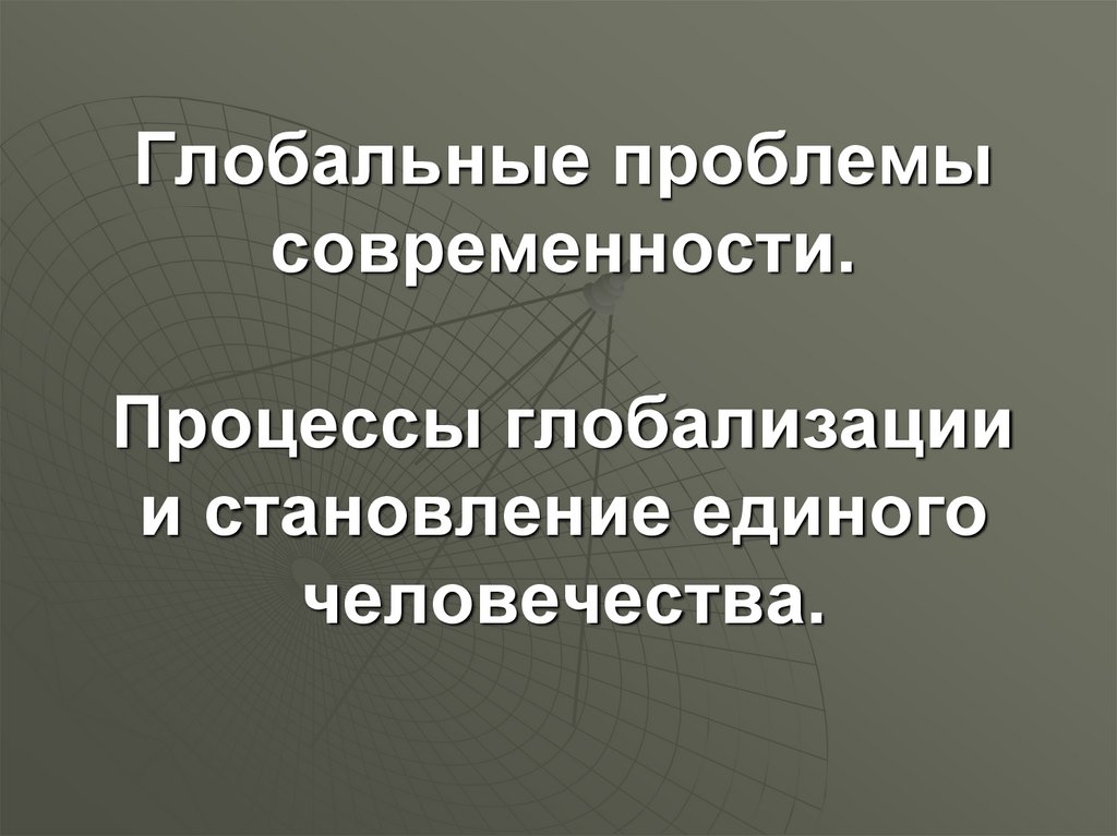 1. Глобальные проблемы современности. Процессы глобализации и становление единого человечества.