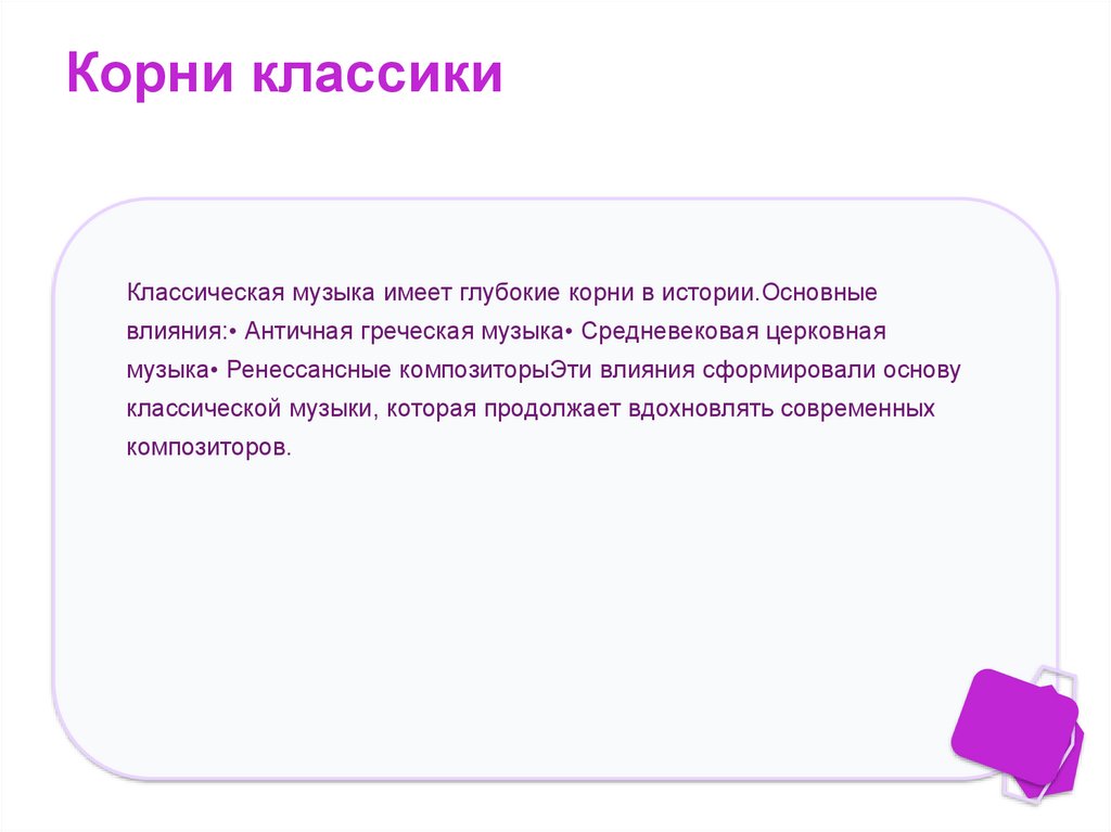 Корни классикиКлассическая музыка имеет глубокие корни в истории.Основные