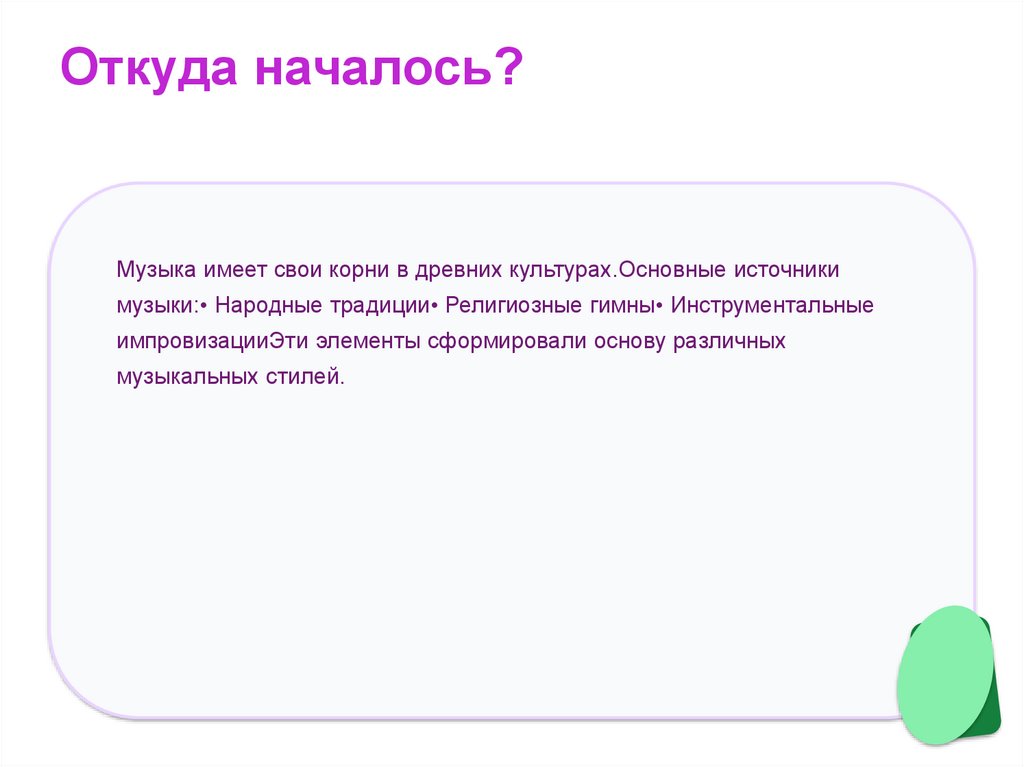 Откуда началось?Музыка имеет свои корни в древних культурах.Основные источники