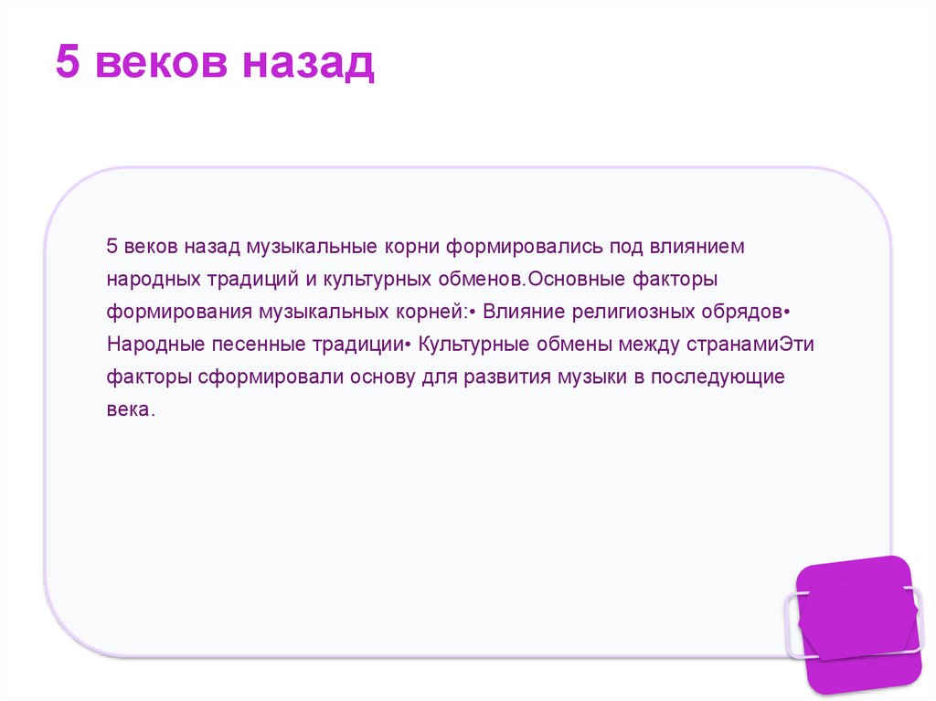 5 веков назад5 веков назад музыкальные корни формировались под влиянием