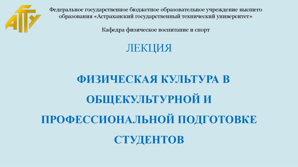 Федеральное государственное бюджетное образовательное учреждение высшегообразования «Астраханский государственный технический университет»