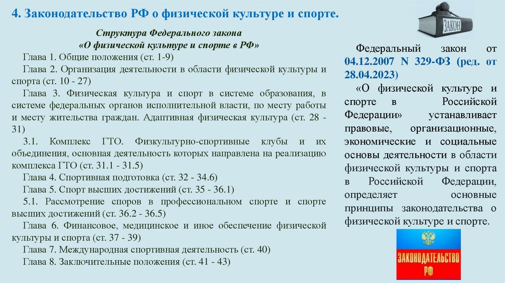 5. Какие основные главы представлены в общей структуре Федерального закона РФ о