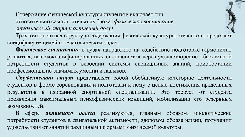 ограничено решением только задач физического развития и воспитания, но выполняет