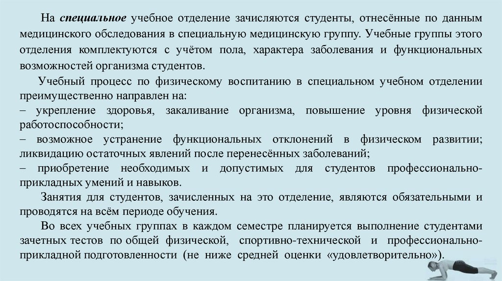Учебный процесс по физическому воспитанию в специальном учебном отделении