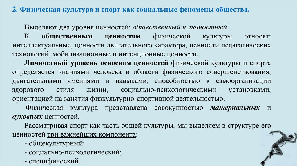 2. Раскройте общественный и личностный уровни ценностей физической культуры и спорта?