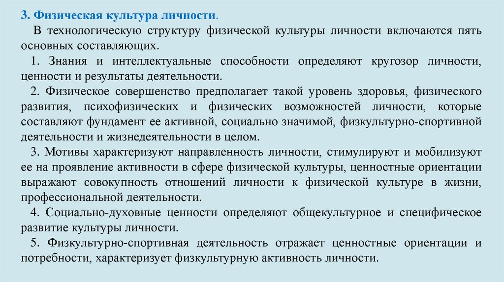 7. Раскройте трехкомпонентную структуру содержания физической культуры и кратко опишите