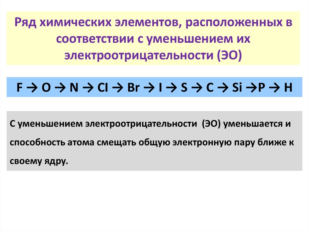 С уменьшением электроотрицательности (ЭО) уменьшается и
