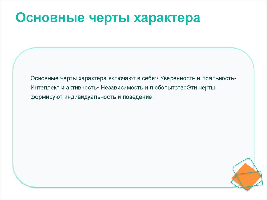 Основные черты характераОсновные черты характера включают в себя:• Уверенность и лояльность