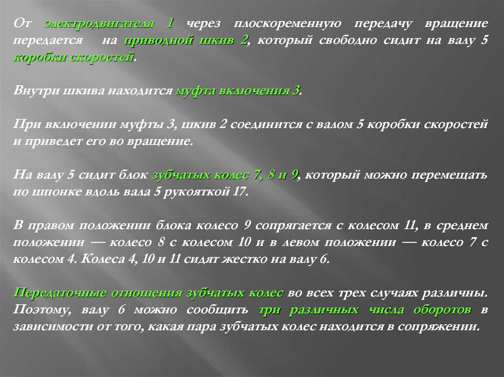 Поэтому, валу 6 можно сообщить три различных числа оборотов в