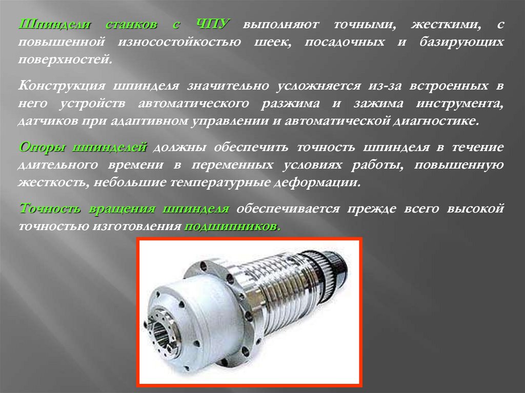Точность вращения шпинделя обеспечивается прежде всего высокой