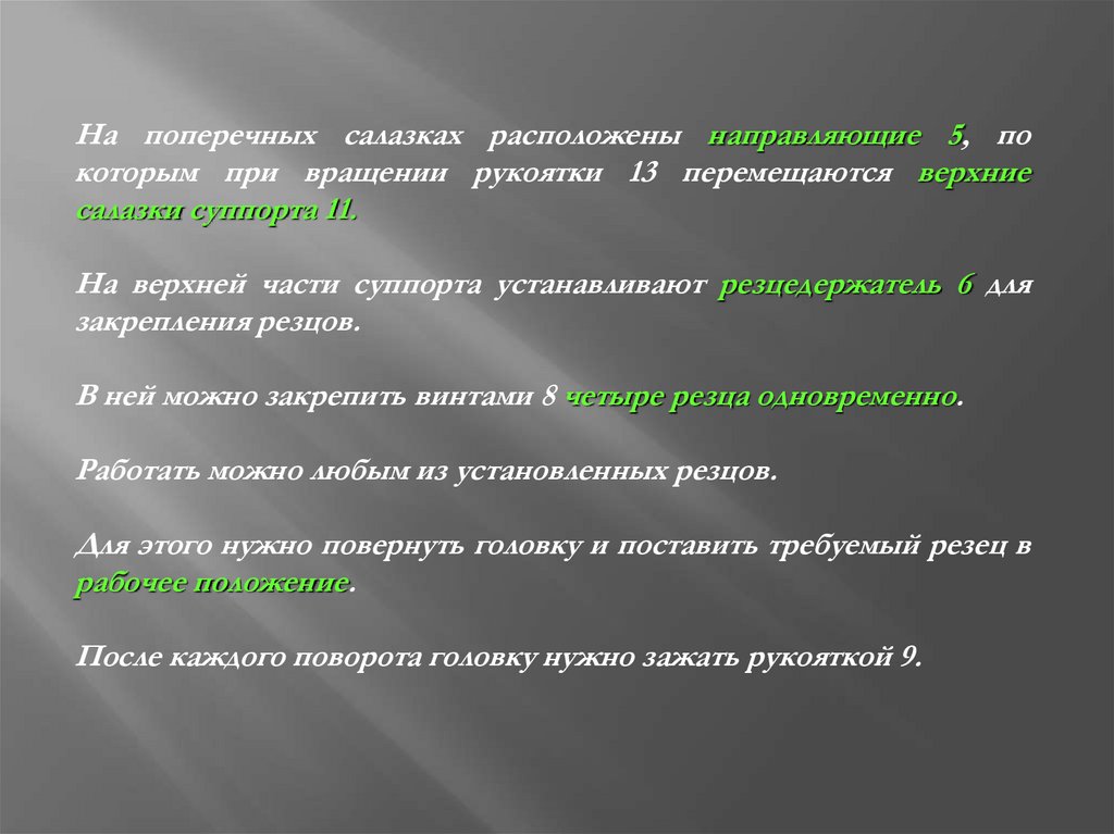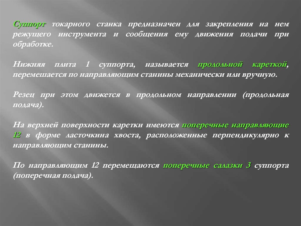4. Каретка суппорта, движущаяся по направляющим станины;