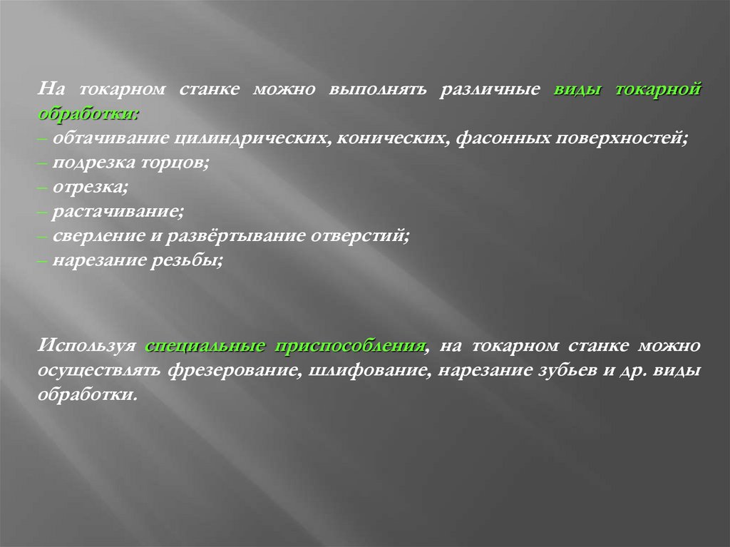 На токарном станке можно выполнять различные виды токарнойобработки: