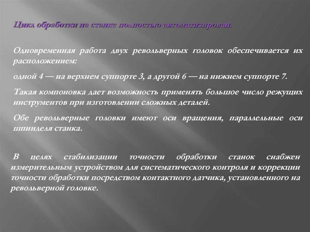 шпинделями) позволяет вести обработку детали с обоих сторон, что