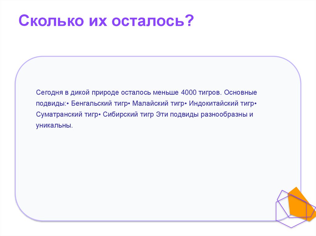 Сколько их осталось?Сегодня в дикой природе осталось меньше 4000 тигров. Основные