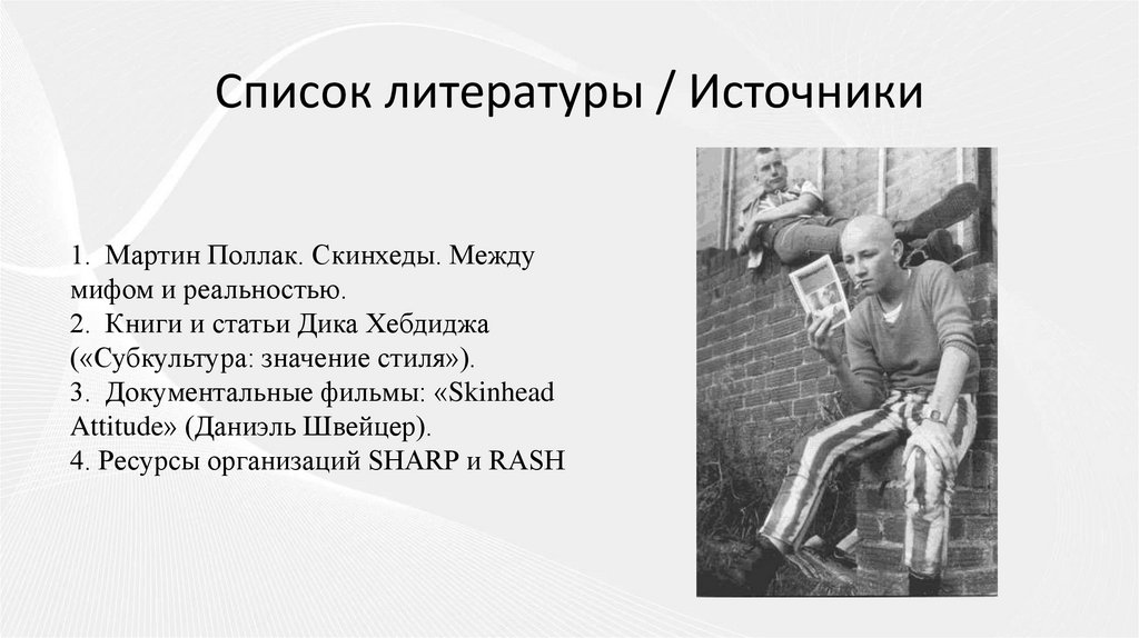 Список литературы / Источники1. Мартин Поллак. Скинхеды. Между