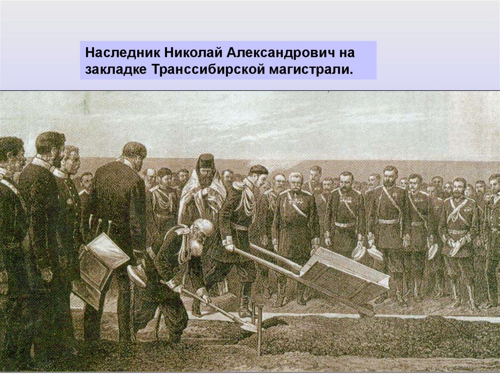 Наследник Николай Александрович назакладке Транссибирской магистрали.