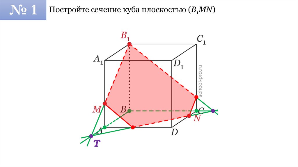 № 15 Постройте сечение куба плоскостью (MNK), если M ∈ (DCC )1