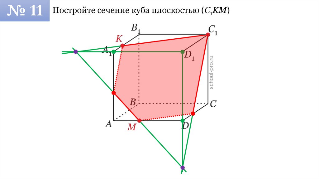 № 11 Постройте сечение куба плоскостью (C KM)1