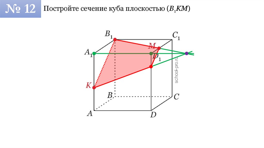 № 12 Постройте сечение куба плоскостью (B KM)1