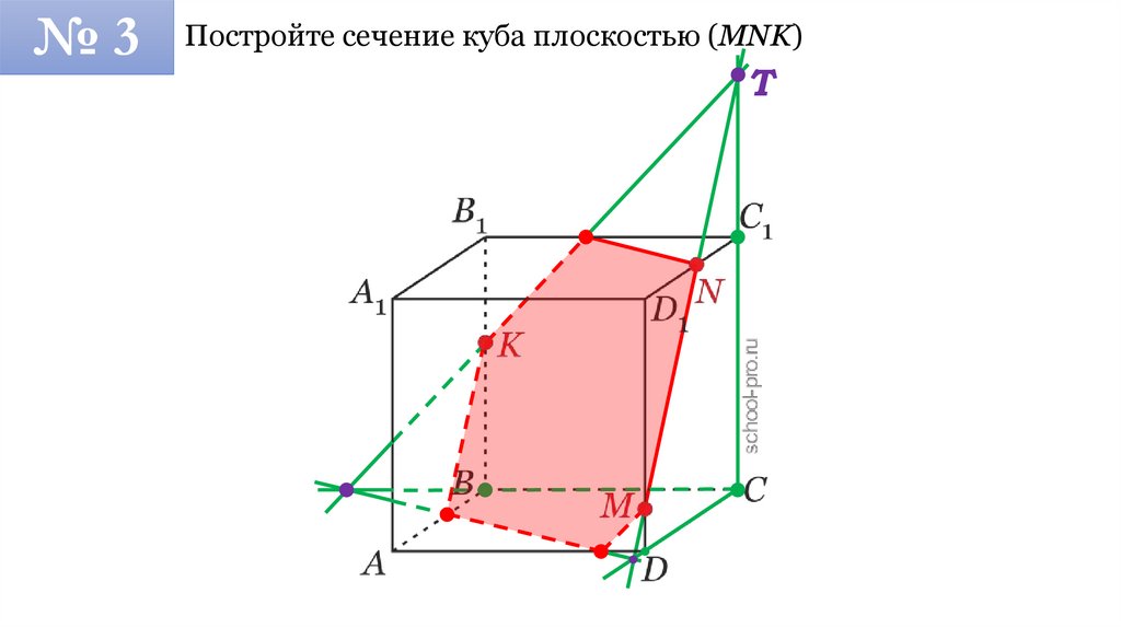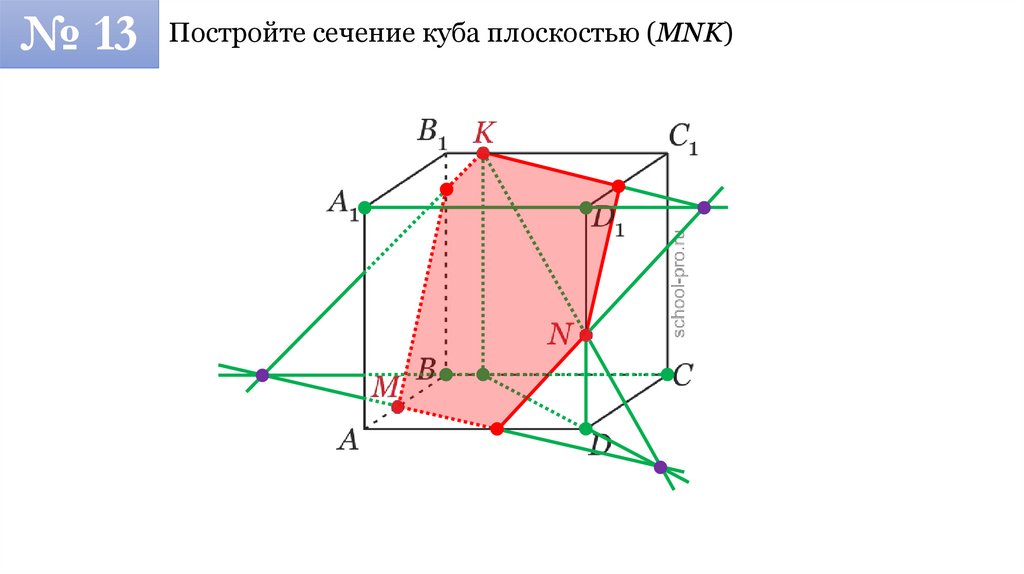 № 13 Постройте сечение куба плоскостью (MNK)14.